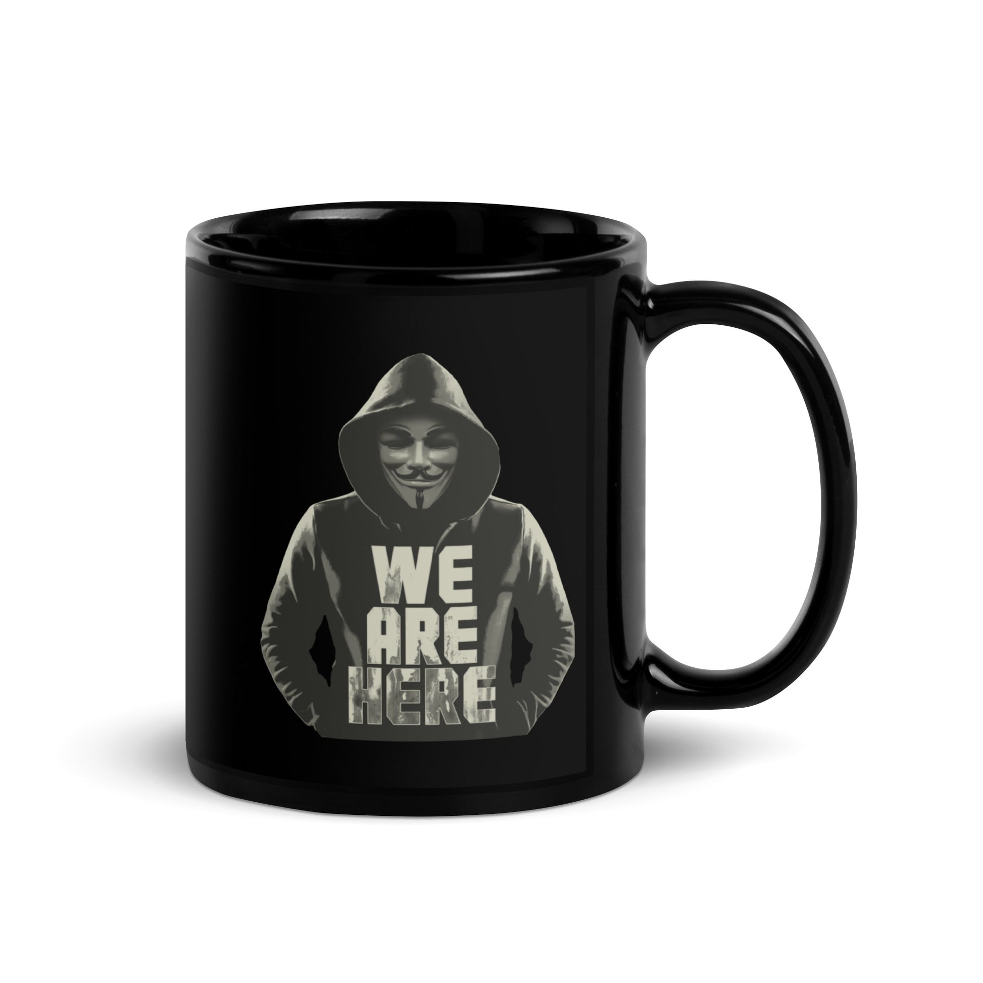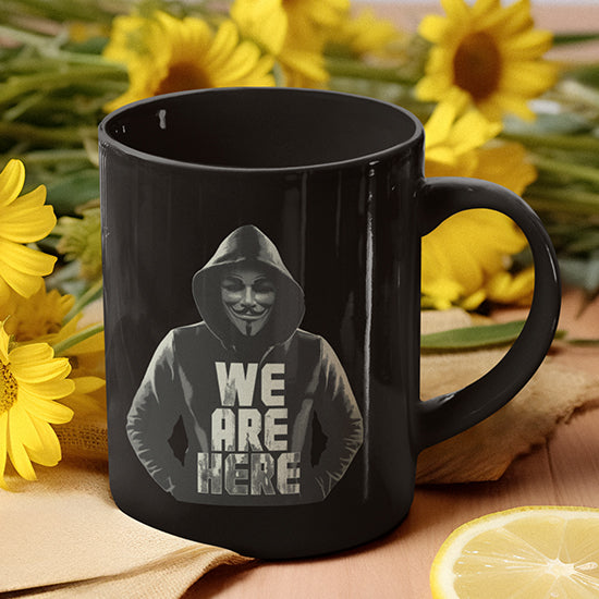 Here We Are V3 Black Glossy Mug